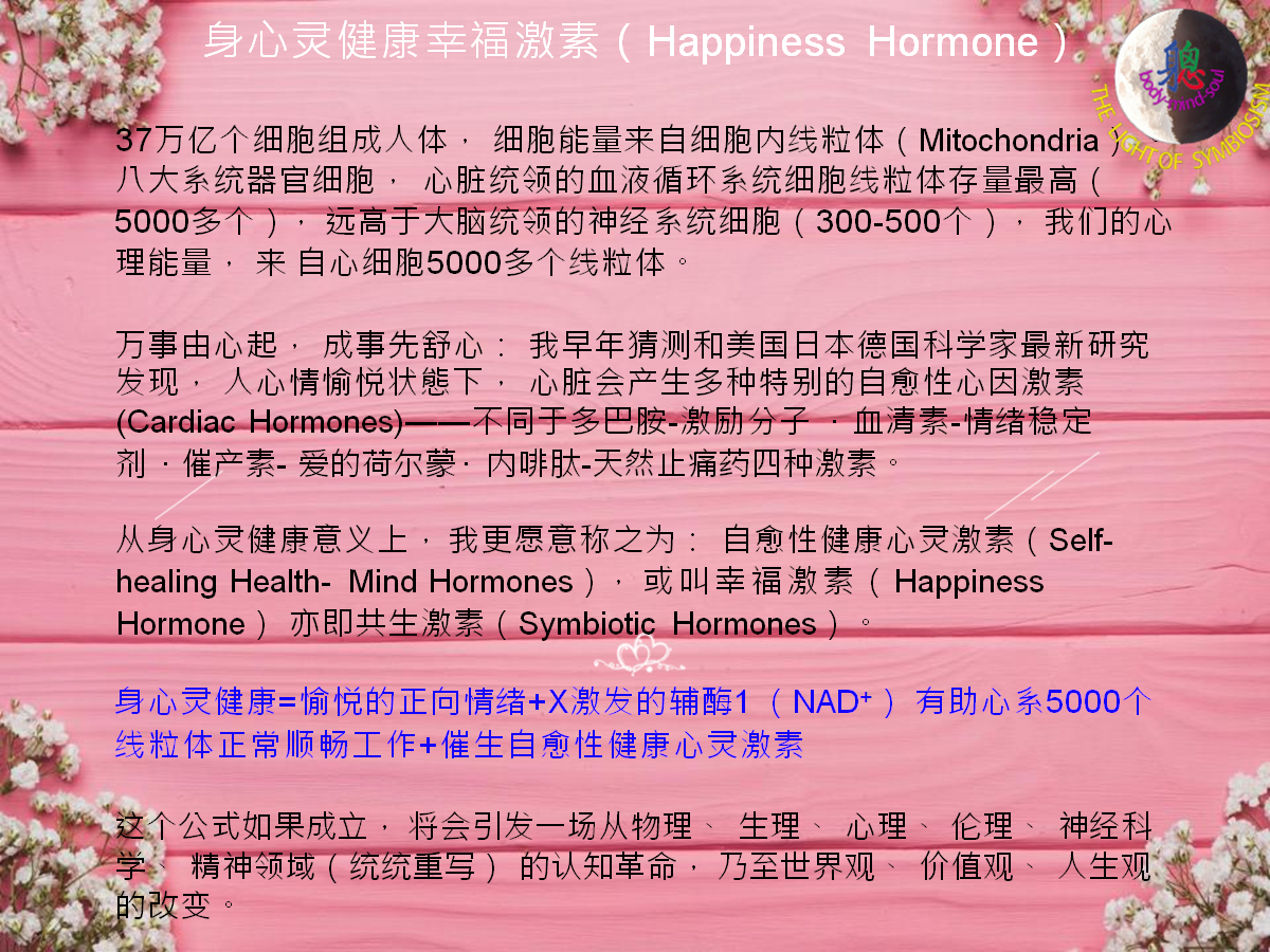 就是说,身心灵、你我他、时空意间的交互共生,通过持续的信念、情感共振与社会支持,降低慢性压力,激活端粒酶活性,提升线粒体能量效率,从而推迟细胞衰老、提升整体生命力。